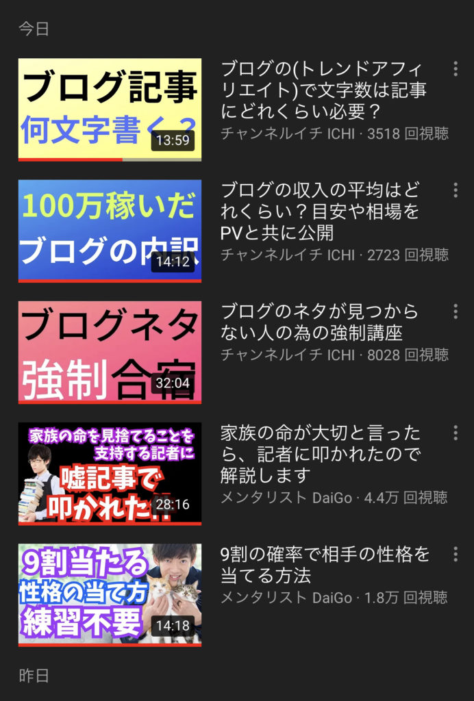 今回は検証のために通常速度でYouTubeを見ました。倍速に慣れてると遅く感じますね(笑)